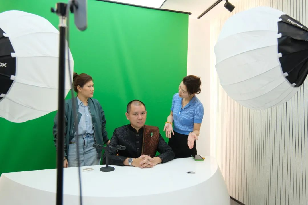 尤其在艺术与传媒学院实训中心,韩冰被我院直播专业的实训设备与课程模式深深吸引、频频驻足,并在亲身体验后发出“泰国尚无高校开设此类专业”的惊叹。