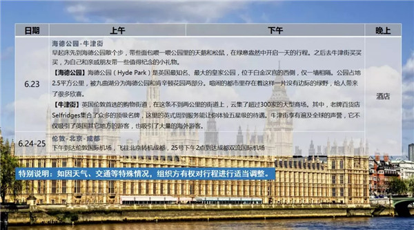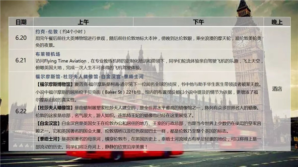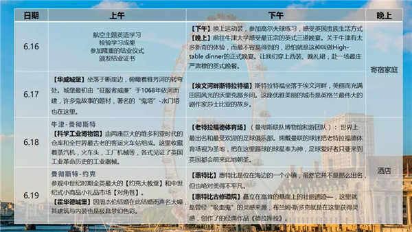 一天的学习结束了,接下来同学们将分别住在寄宿家庭,零距离接触英国文化和生活习俗,深入学习英伦文化。研究世界,学达古今。此次研学之旅拥有科学有效的旅行流程和安全保障方案,并做好可能突发事故的应急预案。在研学过程中,全程按照计划进行,让整个研学更加有意义,让每一个研学同学获得最好的体验……