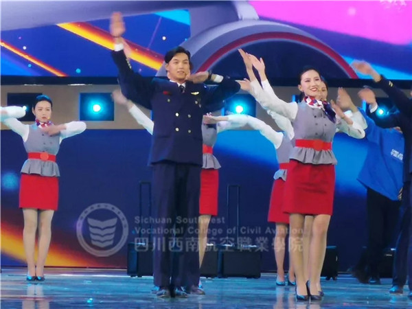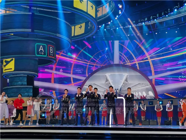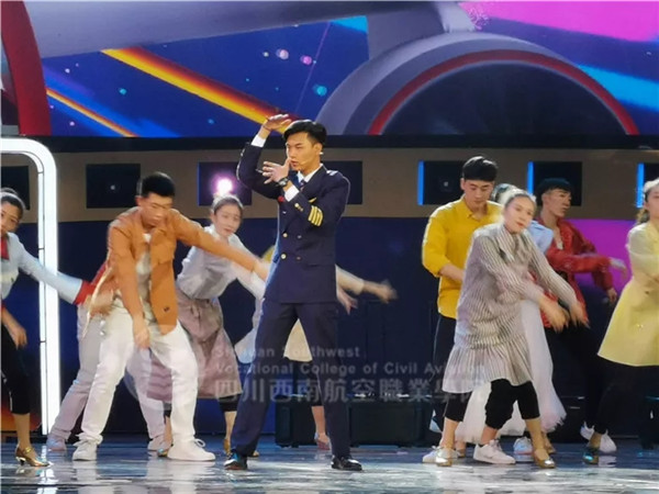 这一场主题为《乐享云端》的情景式舞蹈,通过幽默风趣的歌词,以及西航学子们生动形象的展示,将航空安全知识传递给更多人,共筑民航安全。