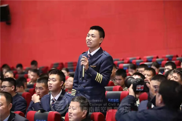 最后,分享会进入万众期待的问答环节,来自西南航空职业学院各个专业的学生就通航的就业前景,民航人具备的能力和素质,通航飞机制造等问题进行了提问,杨元元一一给予了热情的解答。其中针对学生的能力和素质问题,杨元元强调要自信不怯场,主动沟通,具备严谨的作风和开朗的性格。