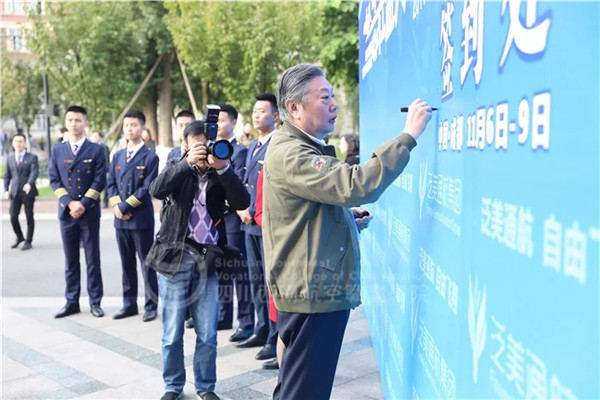 中国航空学会理事长林左鸣,民航局运输司副司长廉秀琴,四川航空集团有限公司董事长李海鹰,泛美集团董事局第一副主席裴明学分别在开幕式上致辞。