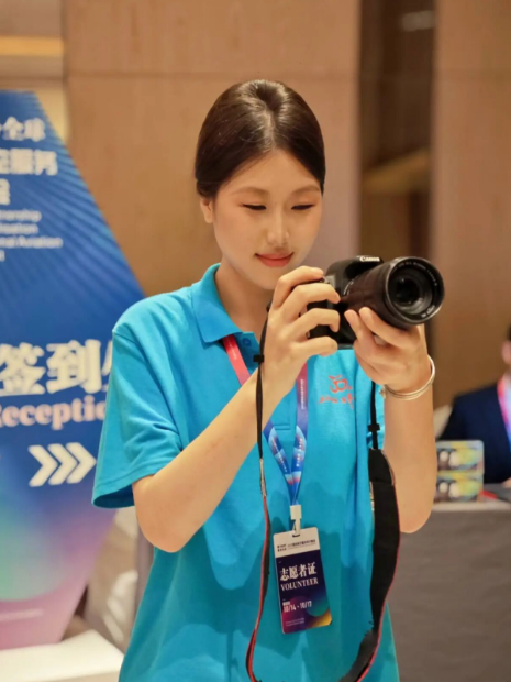 2024级空乘14班,黄艺爽Joker。在本次活动中透过取景框,我捕捉了无数动人瞬间:志愿者热情的微笑、嘉宾投入的神色、双方击掌时的欢欣……起初我以为记录只是客观复刻,但回看这些充满温度的照片时,我恍然领悟:相机所捕捉的,正是这场盛会跳动的“心脏”——那些真挚的情感连接与专业服务的具象体现。这份工作让我懂得,重要的岗位未必总在台前。即使不直接参与交流,影像同样在叙事、致谢、致敬。每一张照片都是我理解的“服务之心”,它让我坚信:以专注之心做好幕后支持,同样是活动圆满不可或缺的力量。