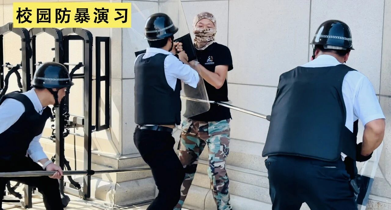 本次演练模拟一名"暴徒"企图强行闯入校园