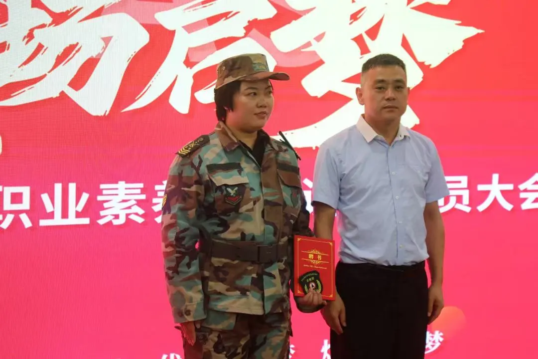 教官代表杨涛金郑重承诺:"我们将以'军事训练为骨架,体育教育为血肉,职业素养为灵魂',助力每位同学完成蜕变。"
