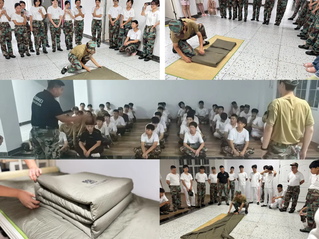 "方寸之间见真章,毫厘之处显精神!"在宿舍区,新生们正在接受严格的内务训练。